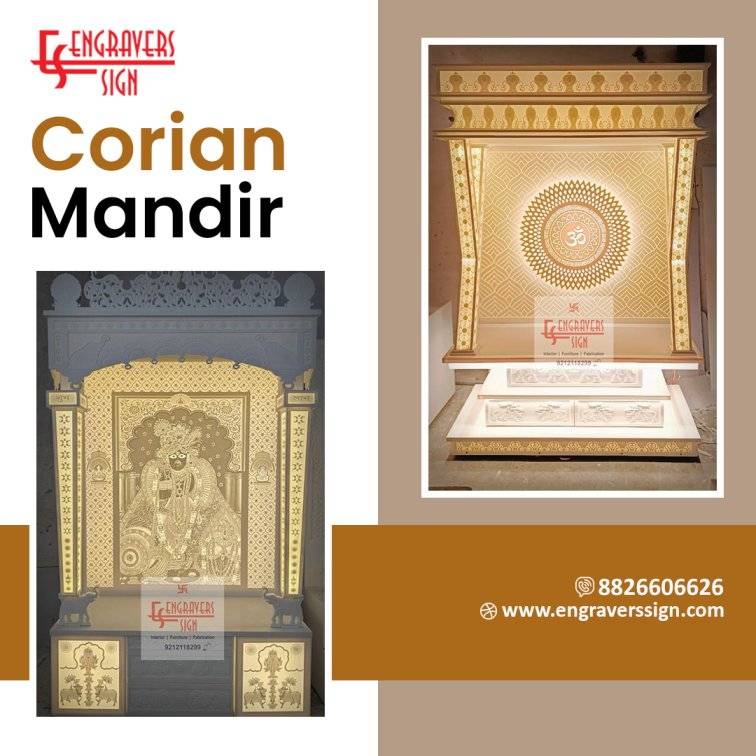 Engravers Sign specializes in crafting Corian Mandirs with precise detailing, smooth finishes, and durable construction. Their mandirs are designed for spiritual use and aesthetic enhancement, blending traditional and modern styles. Each mandir is customized to match home interiors and client preferences. Engravers Sign ensures long-lasting quality, easy maintenance, and elegant appeal, creating sacred spaces that bring serenity and style to any interior environment.