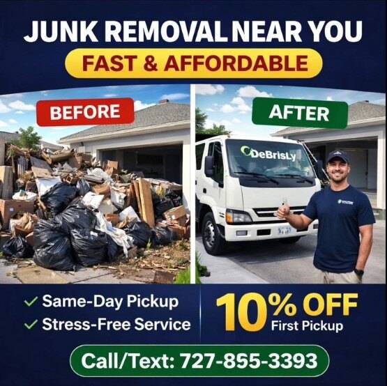 At DeBrisLy, your go-to for junk removal Pasco County and junk removal Hillsborough County, we help homeowners, renters, and businesses clear out unwanted items quickly and stress-free.